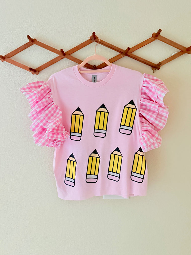 Classroom Collection- Pencil Pink Ruffle tee
