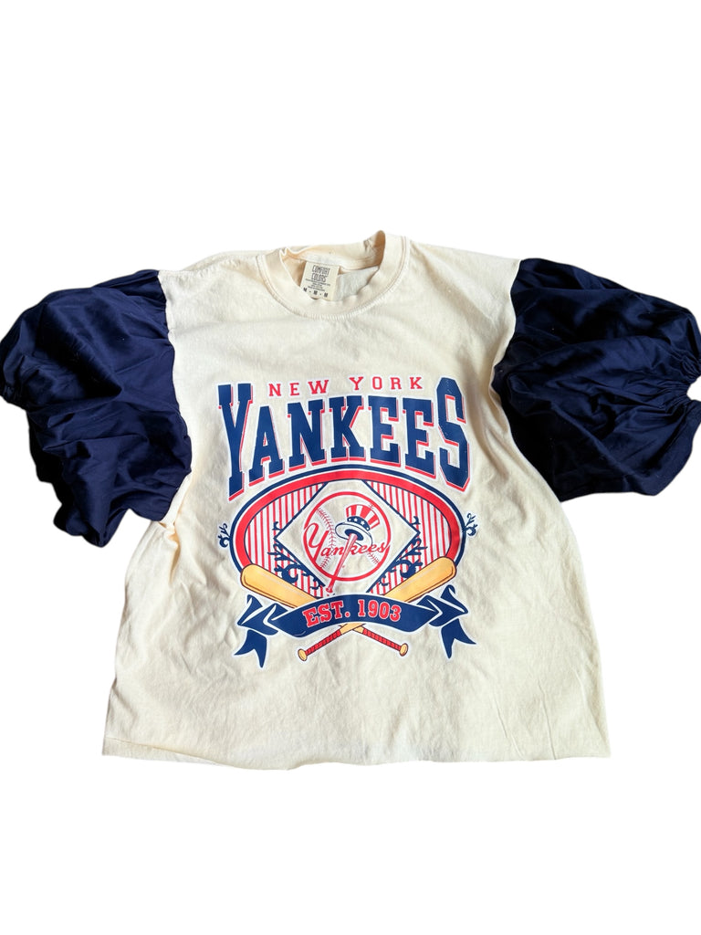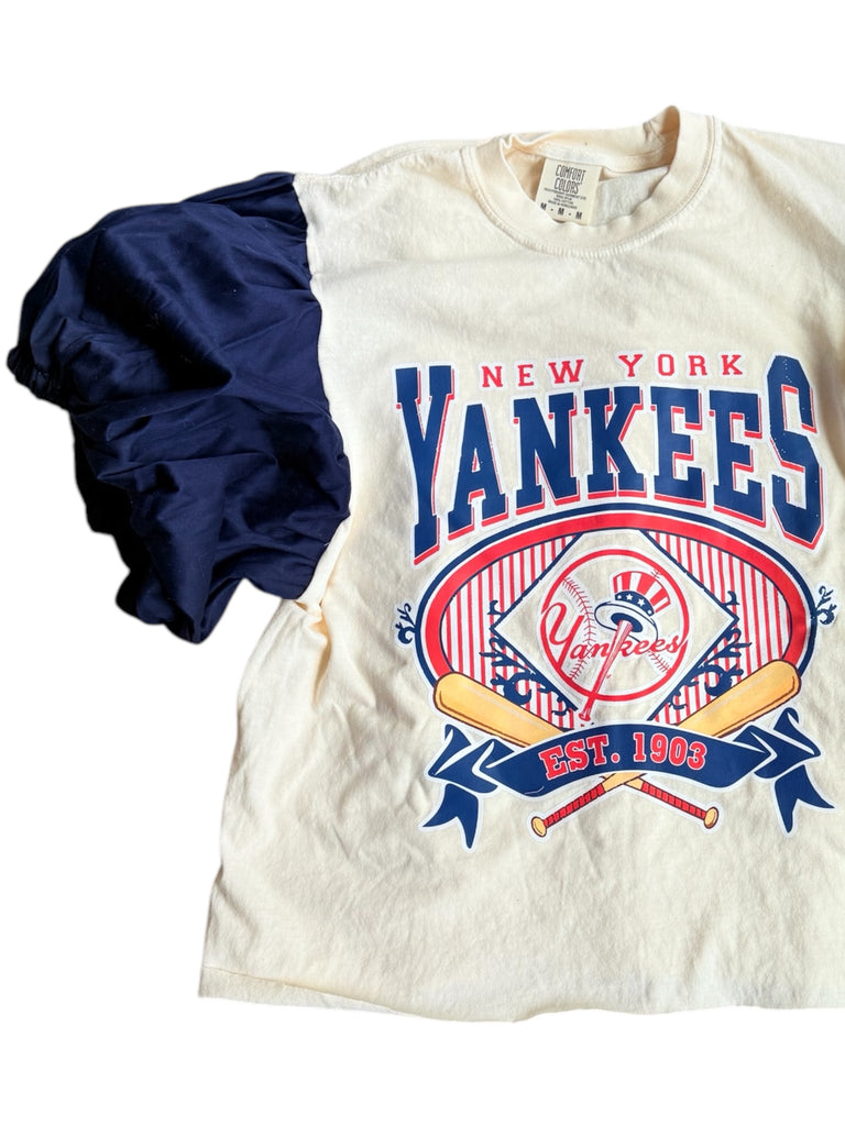 NY Yankees Navy Color Block Puff (Choose between a T Shirt Puff or Off Shoulder)