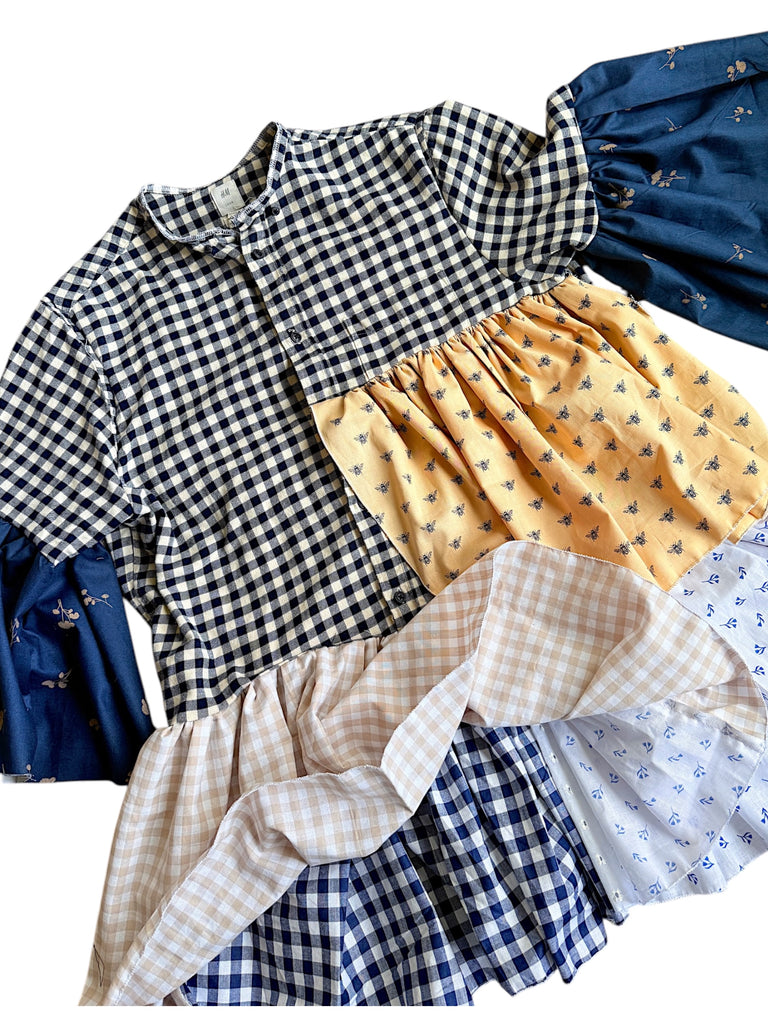 All ruffled tunics/dresses are made from vintage/reworked button ups and range in different sizes.