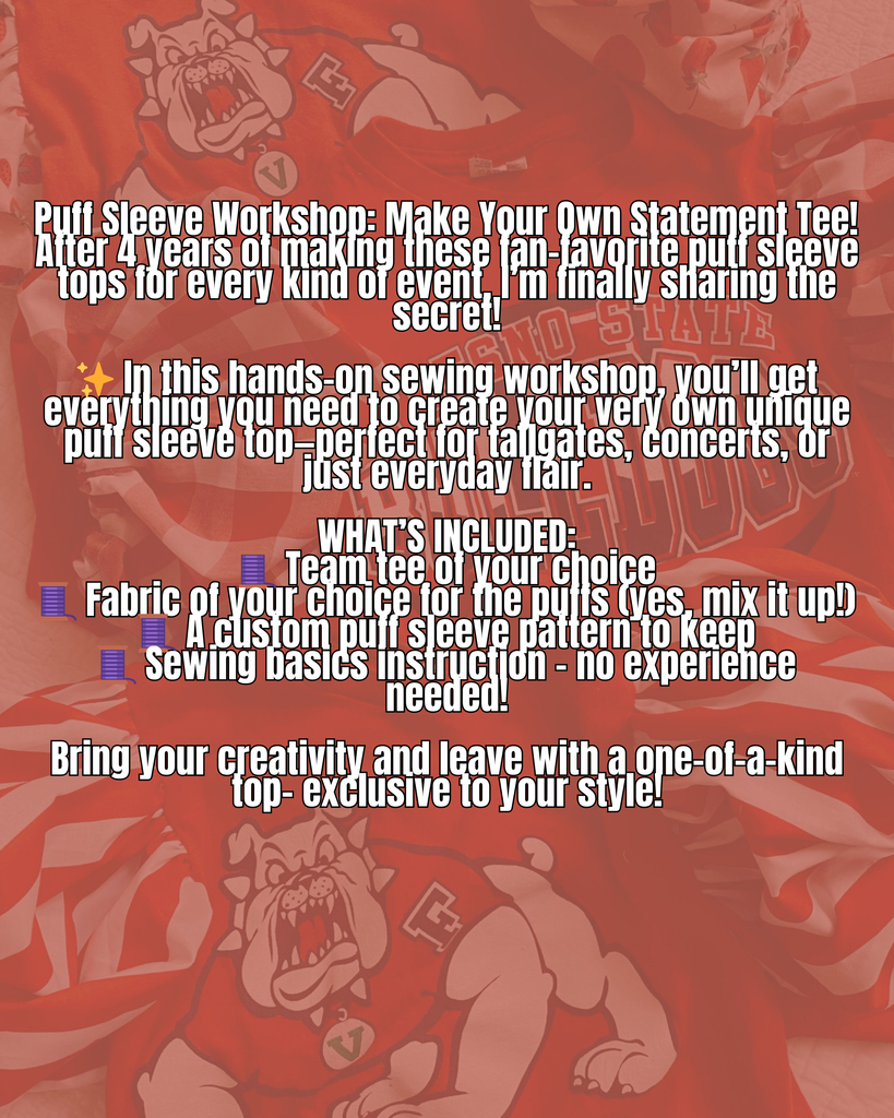 This class is perfect for beginners or anyone who wants to level up their sewing skills while creating a personalized piece you’ll love to wear to concerts, sporting events, or everyday styling.